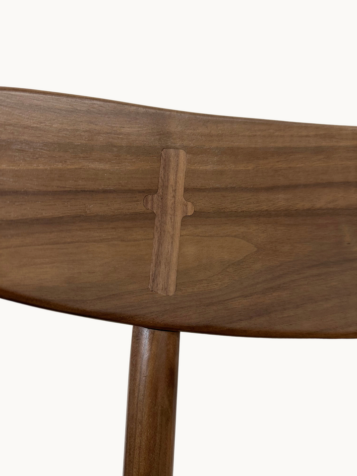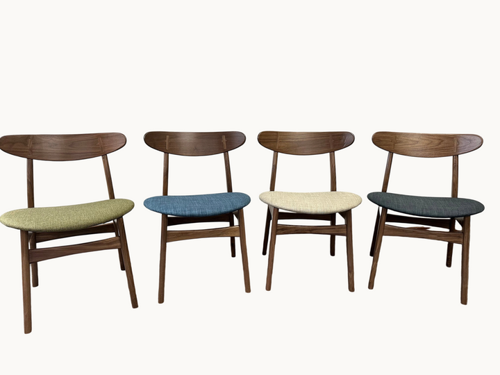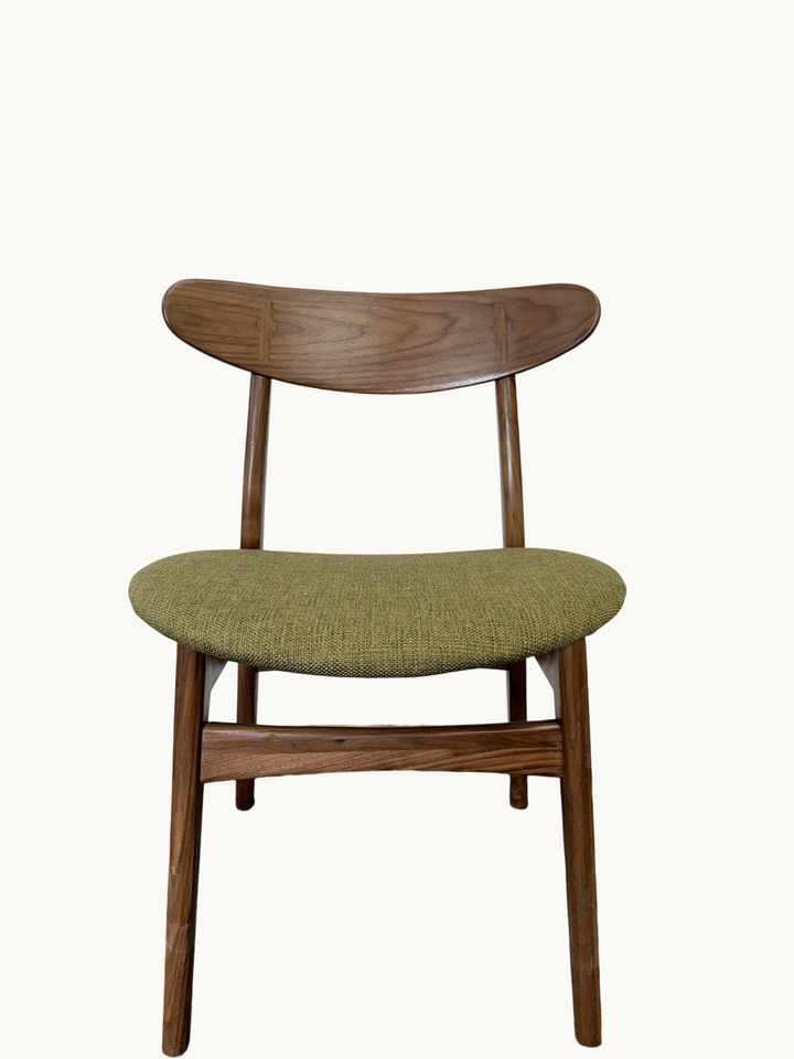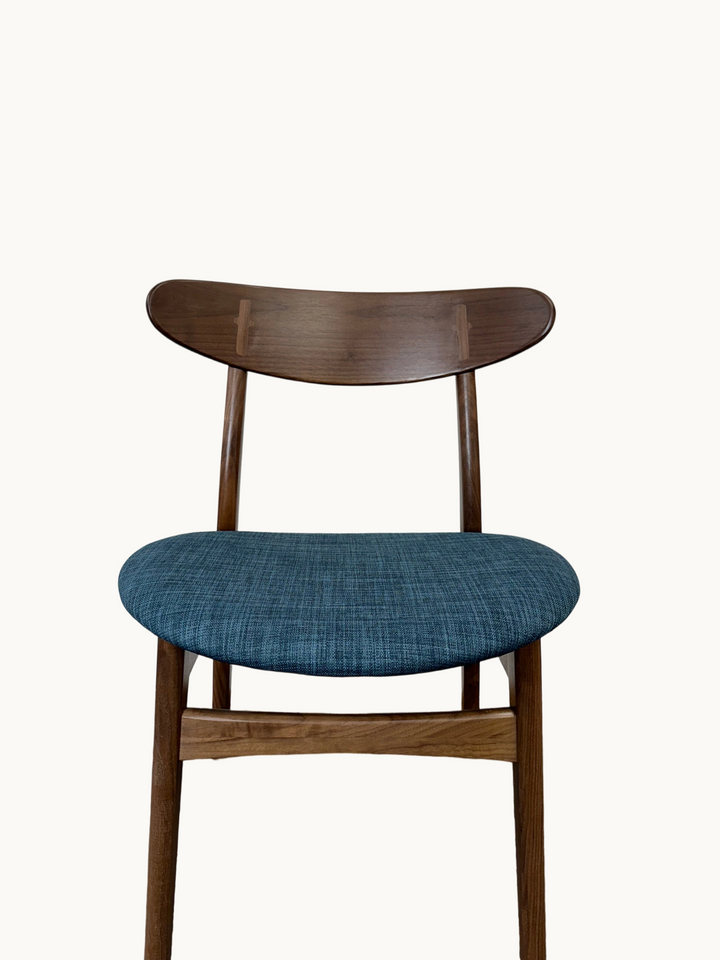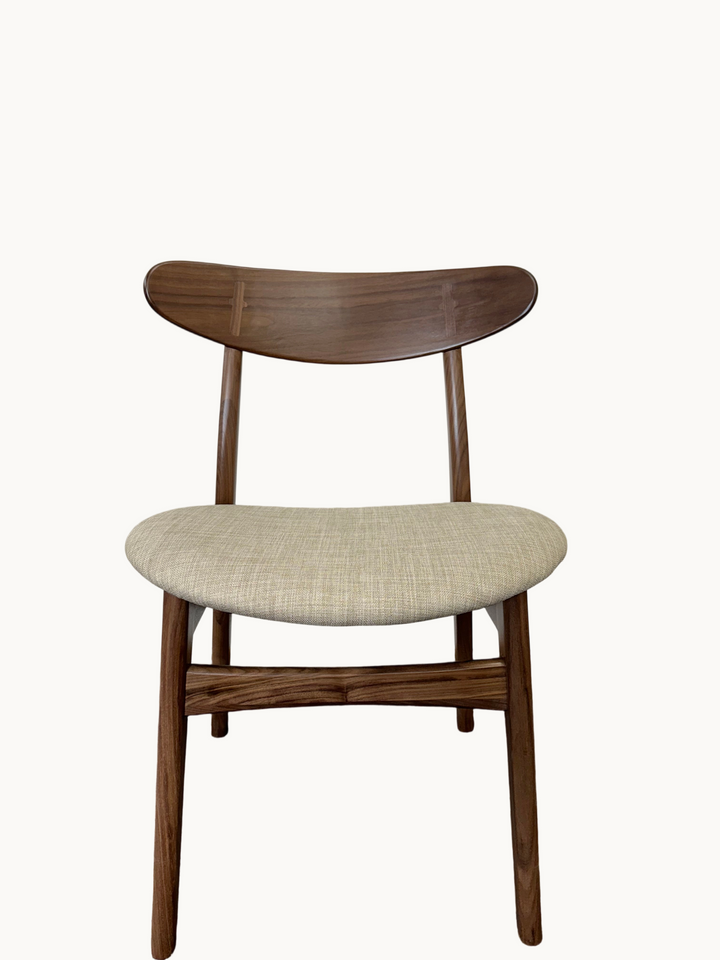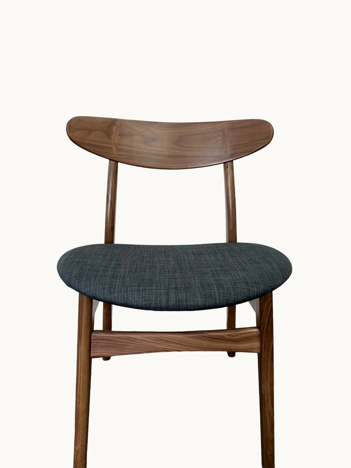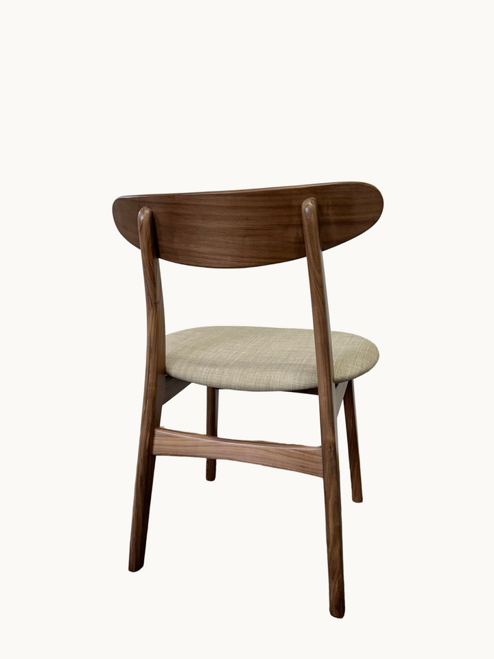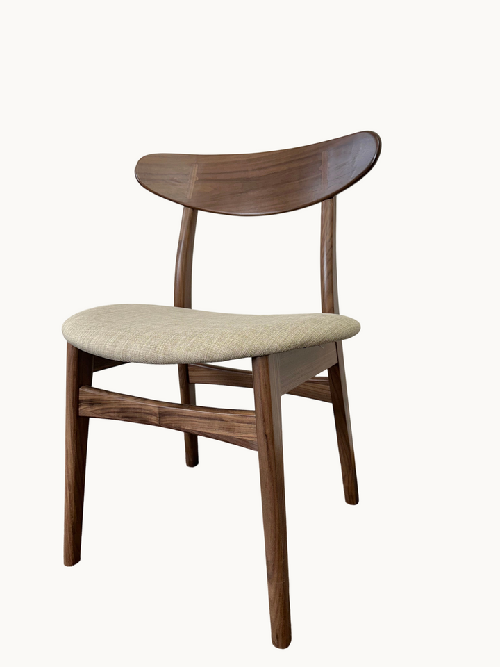 Lykke dining chair embodies the warmth and natural aesthetics of life through its minimalist Nordic design language. The finely polished solid wood frame showcases the natural grain of walnut, while the gently curved backrest provides comfortable support. The spacious seat is covered with a soft fabric cushion, offering both a cozy touch and lasting durability, making every seating experience a pleasure.